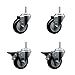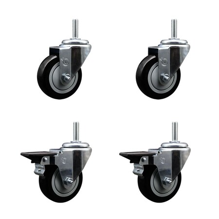 Polyurethane Swivel Threaded Stem Caster Set of 4 w/3.5" x 1.25" Black Wheels and 5/8" Stems - Includes 2 with Posi Locking Brake - 1,200 lbs Total Capacity - Service Caster Brand