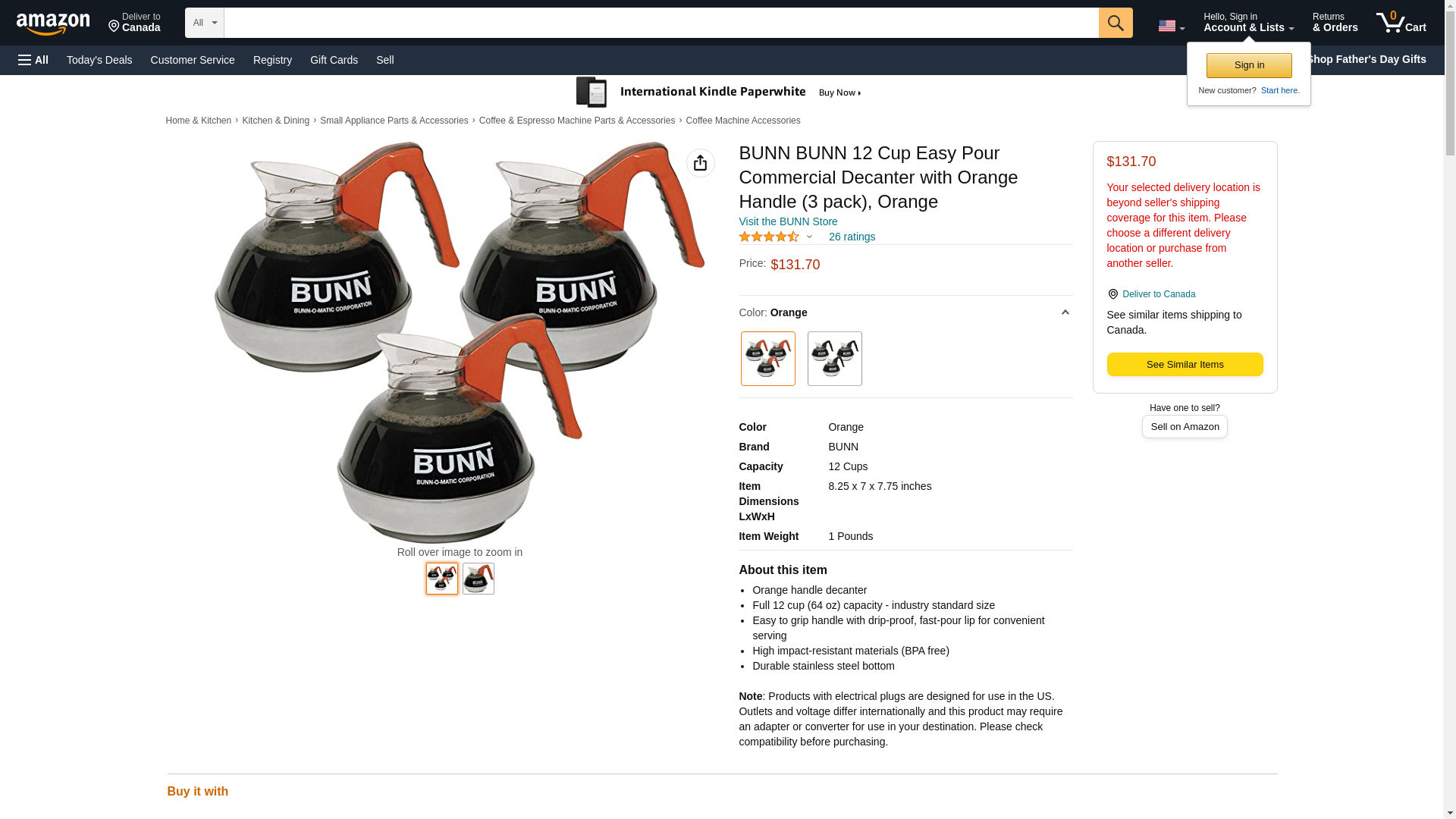 BUNN Easy Pour 64 Oz Orange Coffee Decanter / Case of 3 - Pack = 3