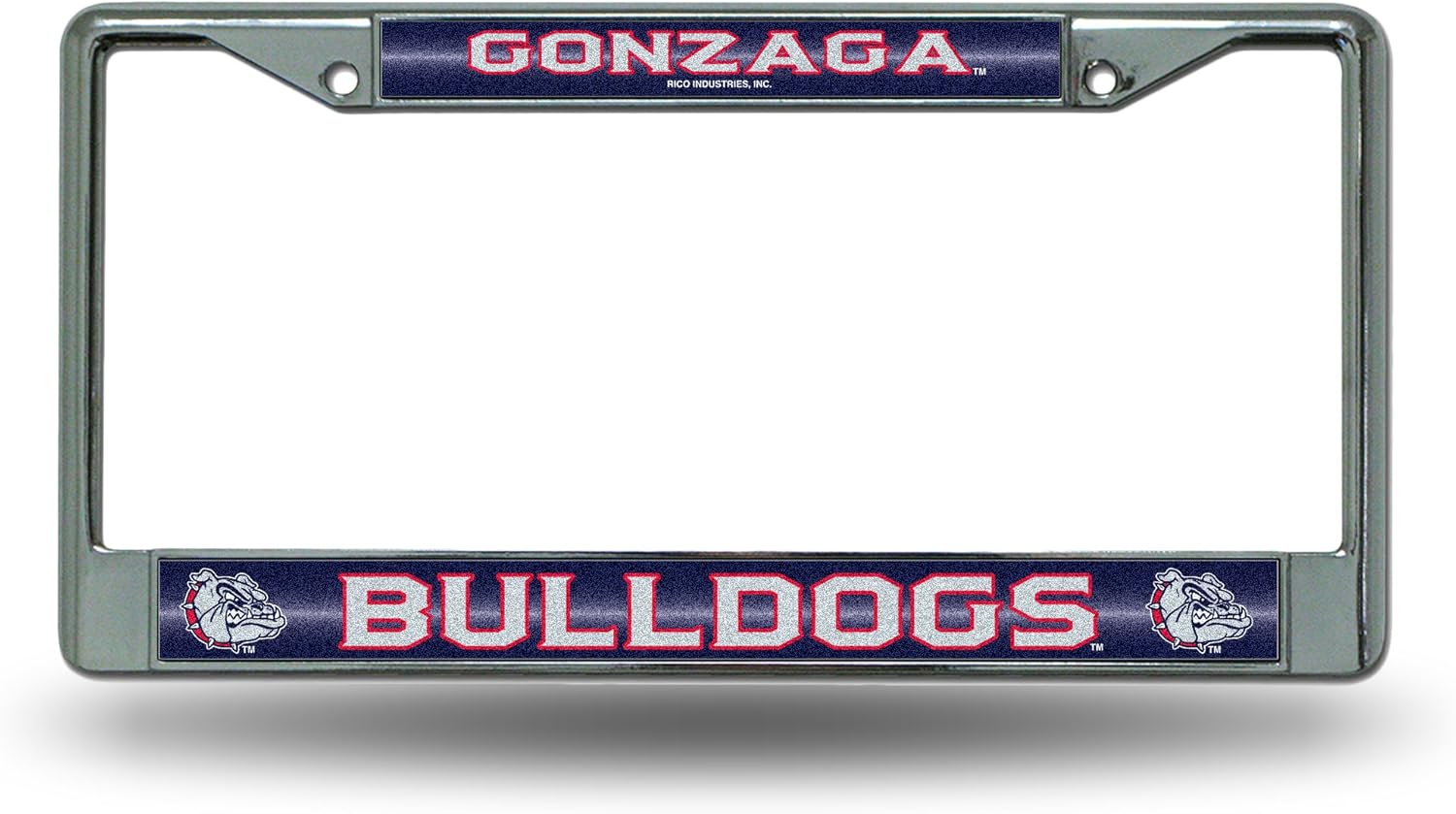 NCAA Rico Industries Bling Chrome License Plate Frame with Glitter Accent, Gonzaga Bulldogs