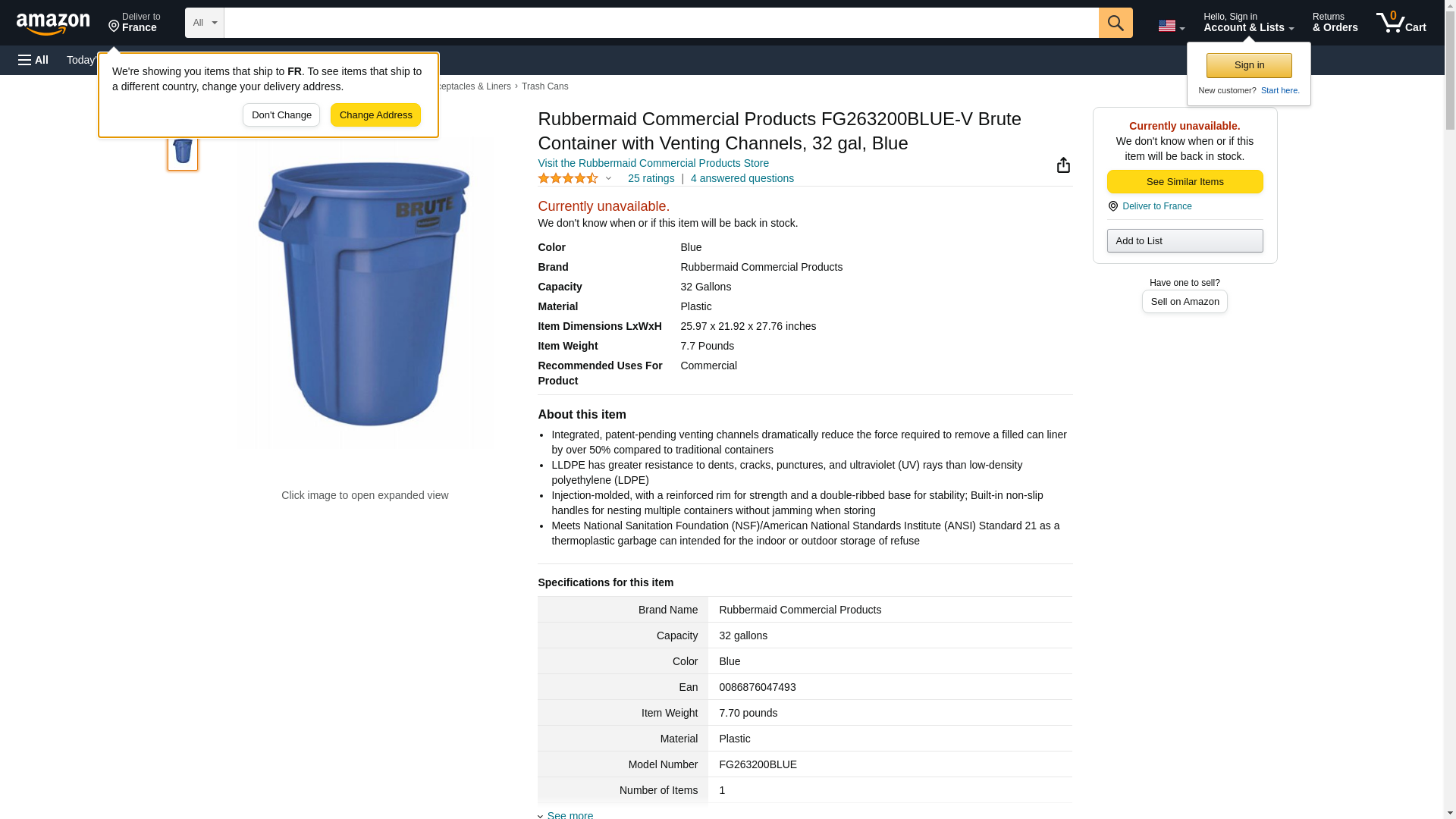 Rubbermaid Commercial Products FG263200BLUE-V Brute Container with Venting Channels, 32 gal, Blue. Integrated, patent...