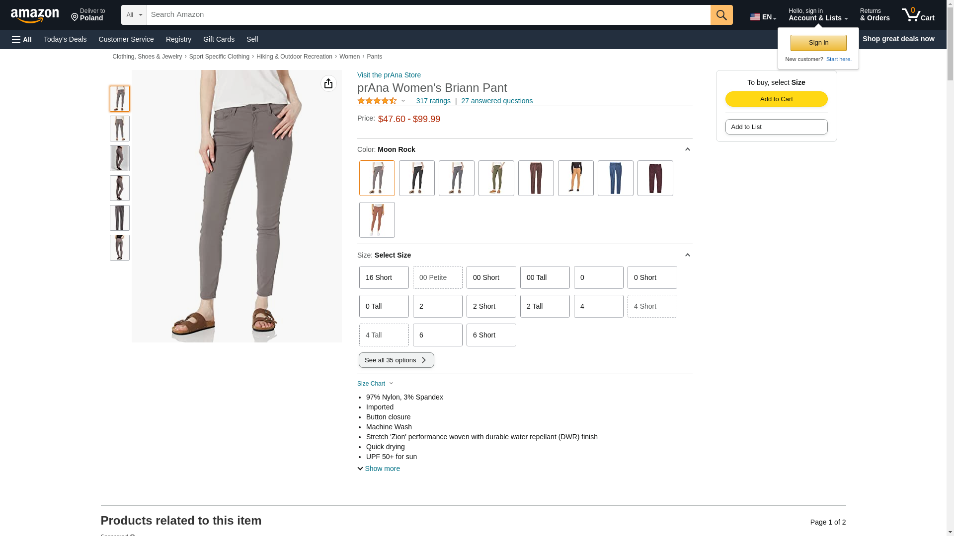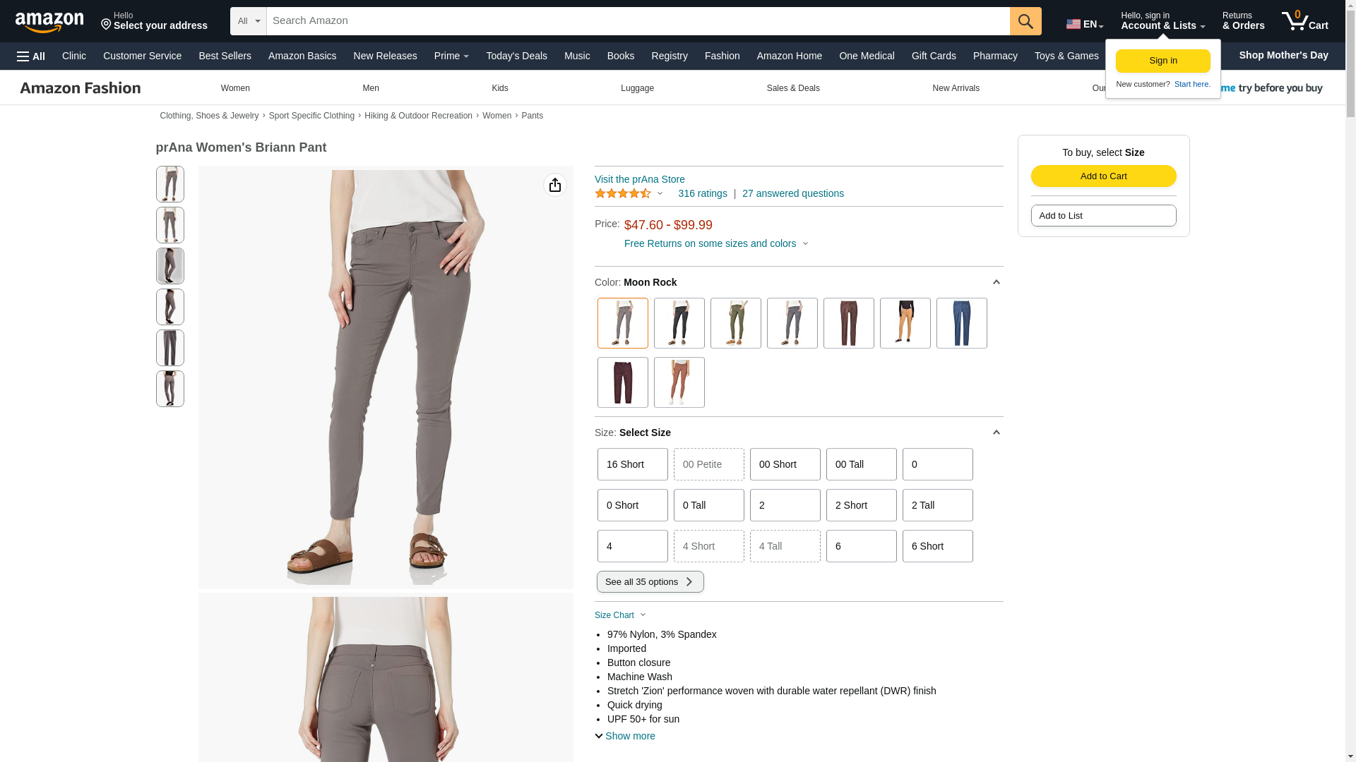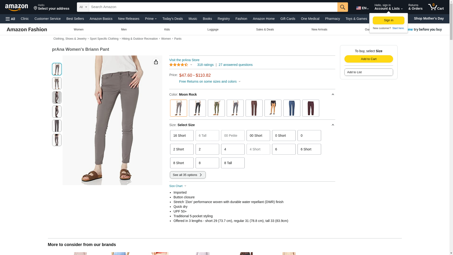 prAna Women's Size Briann Pant, Moon Rock, 10 Tall