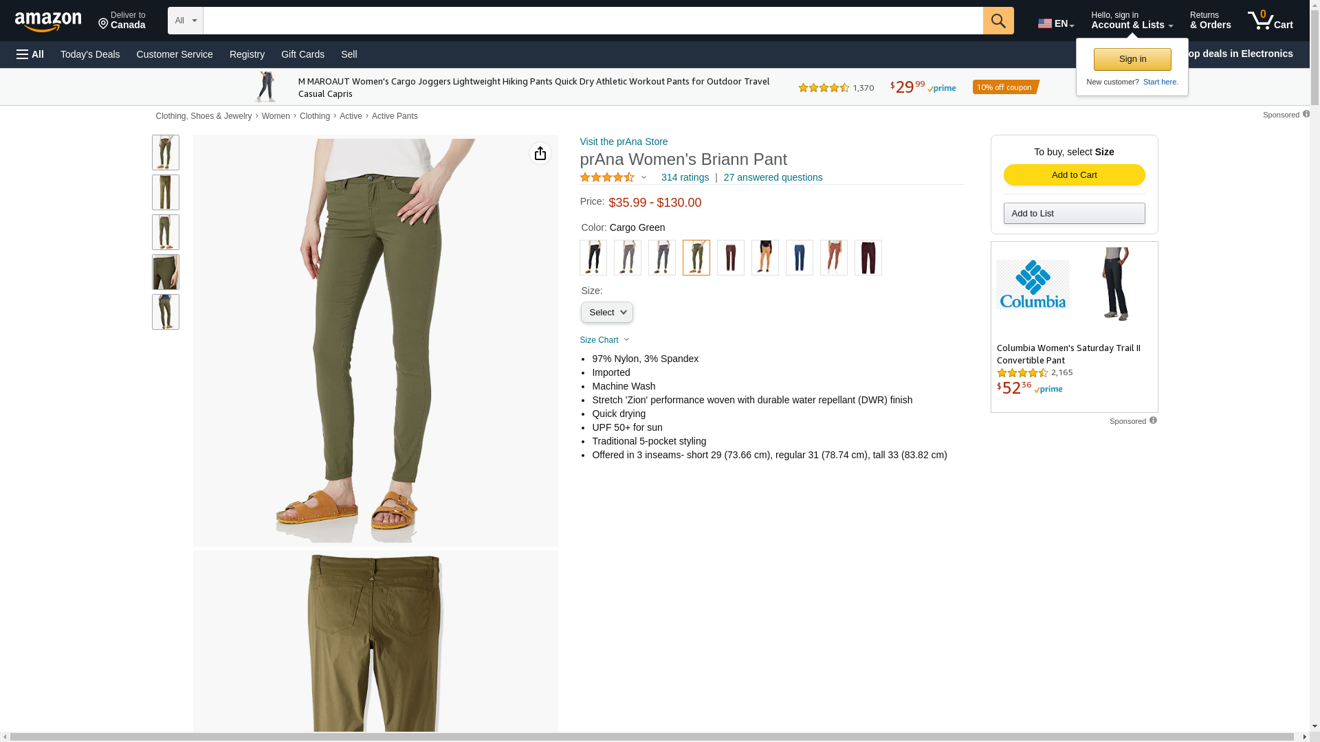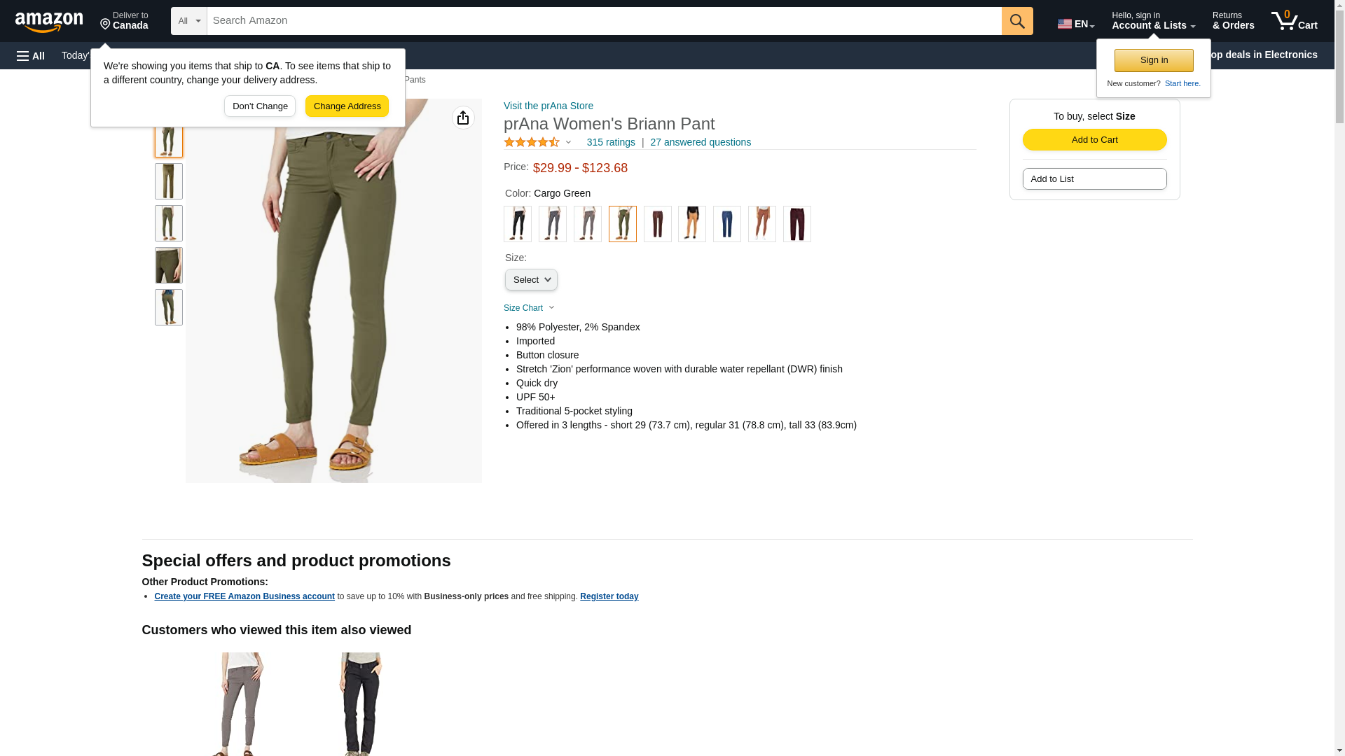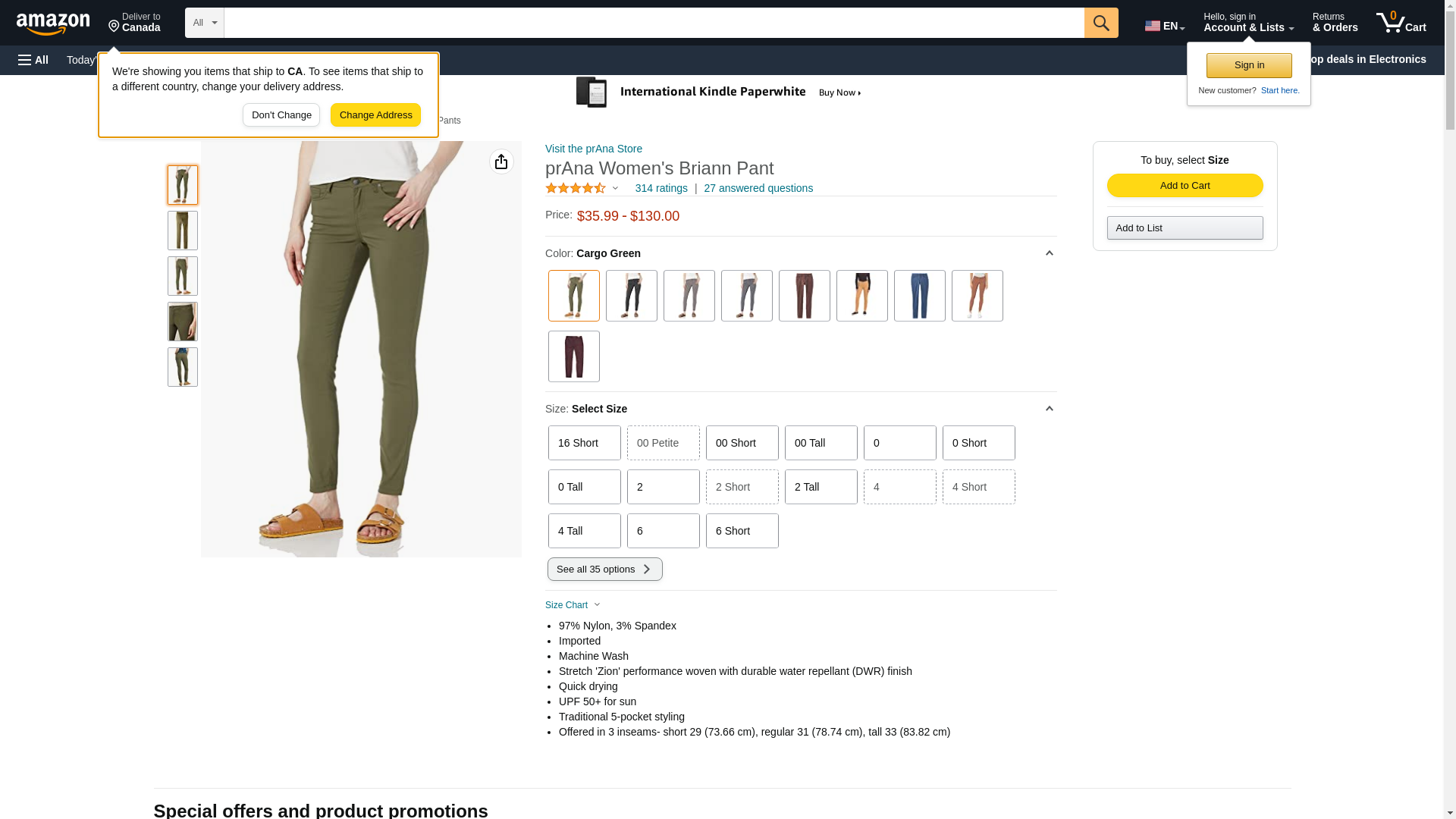 prAna Women's Standard Briann Pant, Cargo Green, 00 Tall