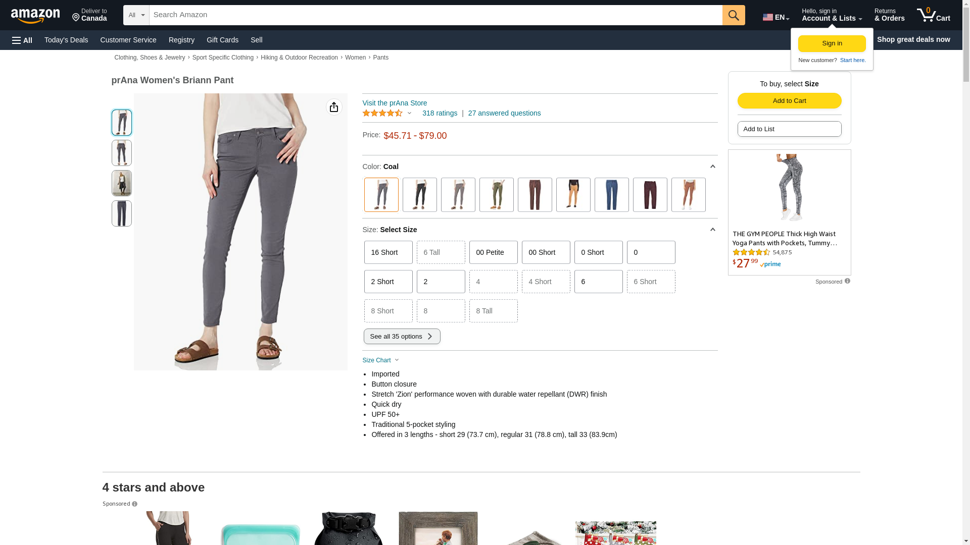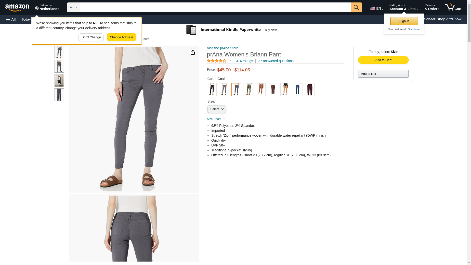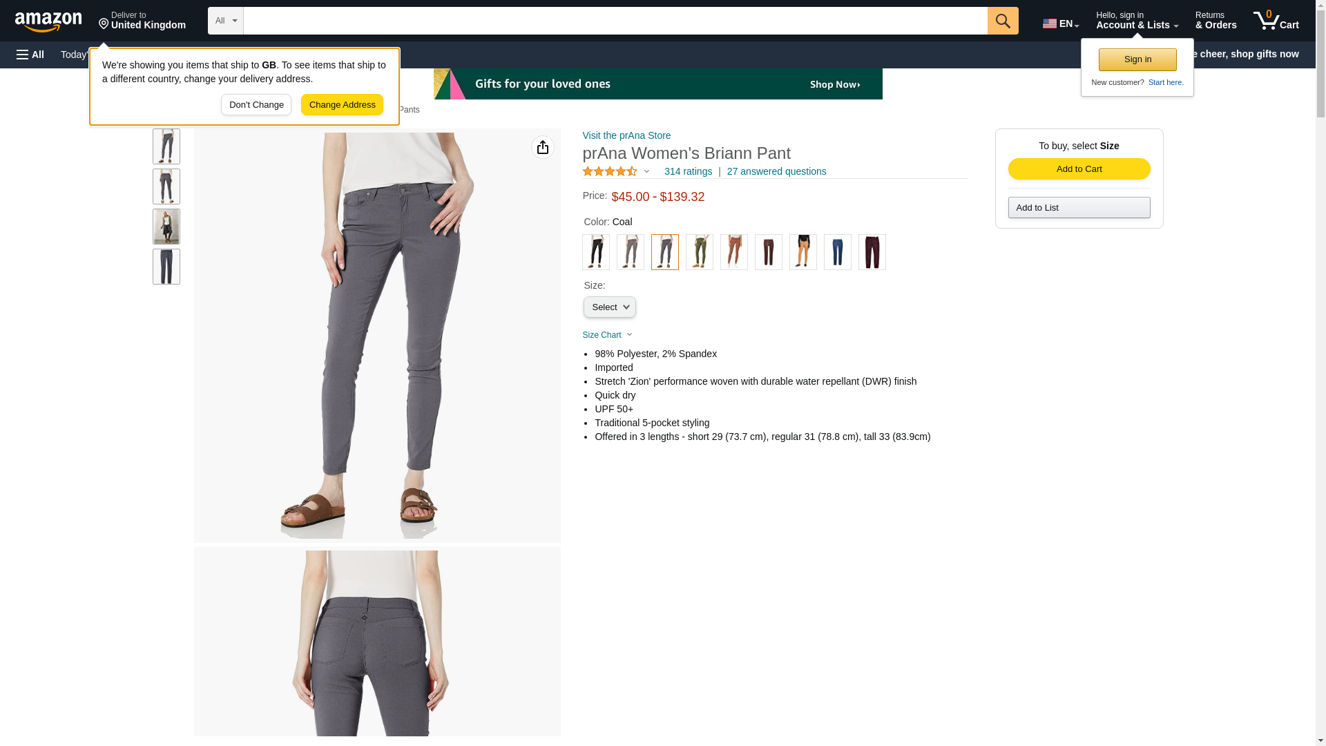 prAna Women's Briann Pant, Coal, 8 Tall