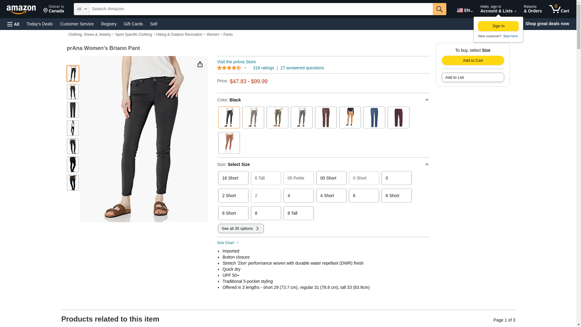 prAna Women's Standard Briann Pant, Black, 0 Tall