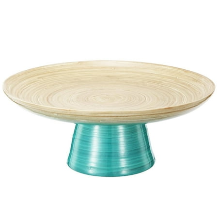 12" Teal and Tan Decorative Ombre Dynasty Bamboo Presentation Pedestal Tray