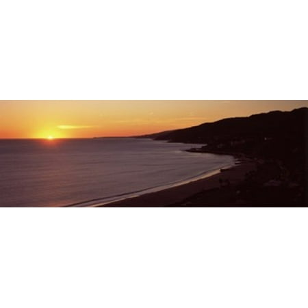 Panoramic Images Stretched Canvas Art - Beach at sunset, Malibu Beach, Malibu, Los Angeles County, California, USA - Medium 18 x 7 inch Wall Art Decor Size.