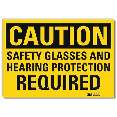 Safety Sign, Horizontal Rectangle, Number of Printed Sides 1, English, Sign Format Traditional OSHA, Sign Legend Safety Glasses And Hearing Protection Required, Sign Legend Background Color Yellow, Sign Legend Style Text