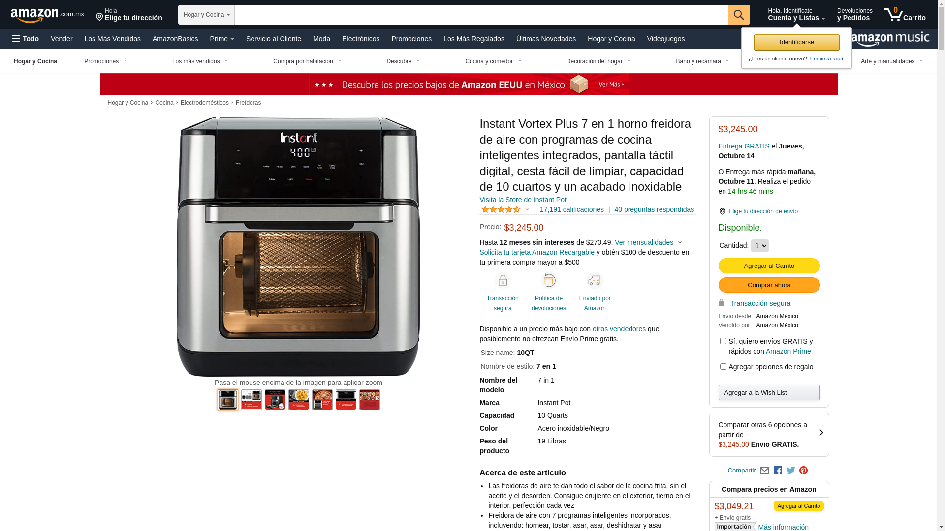 Instant Pot 10QT Air Fryer, 7-in-1 Functions with EvenCrisp Technology that Crisps, Broils, Bakes, Roasts, Dehydrates, Reheats & Rotisseries, Includes over 100 In-App Recipes, Stainless Steel