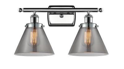 INNOVATIONS LIGHTING 916-2W-PC-G43 BALLSTON LARGE CONE 2 LIGHT 16 INCH PLATED SMOKE GLASS VANITY LIGHT, POLISHED...