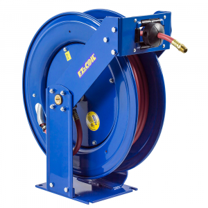 | Feature | Spring-driven controlled-retraction hose reel for 1/2" ID hoses up to 50\' long, suitable for air, water, and oil applications |