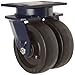RWM Casters 2-75 Series Plate Caster, Swivel, Dual Wheel, Kingpinless, Cast Iron Wheel, Roller Bearing, 2800 lbs Capacity, 8" Wheel Dia, 2" Wheel Width, 10-1/8" Mount Height, 6-1/2" Plate Length, 4-1/2" Plate Width