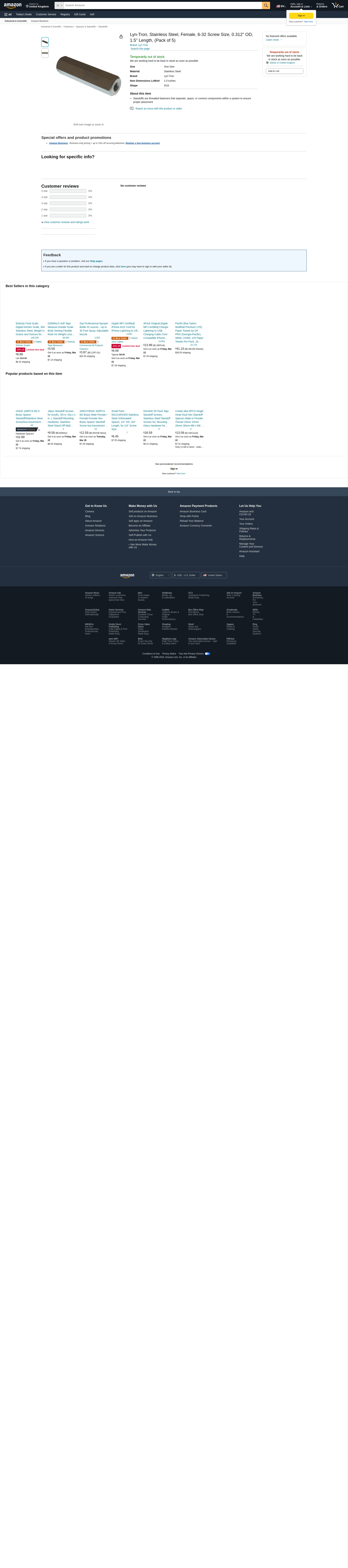 Lyn-Tron, Stainless Steel, Female, 6-32 Screw Size, 0.312" OD, 1.5" Length, (Pack of 5)