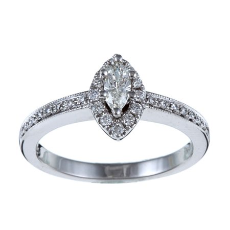 <ul> <li>Diamond: One</li> <li>Center cut: Marquise </li> <li>Weight: 1/5 carat</li> </ul>