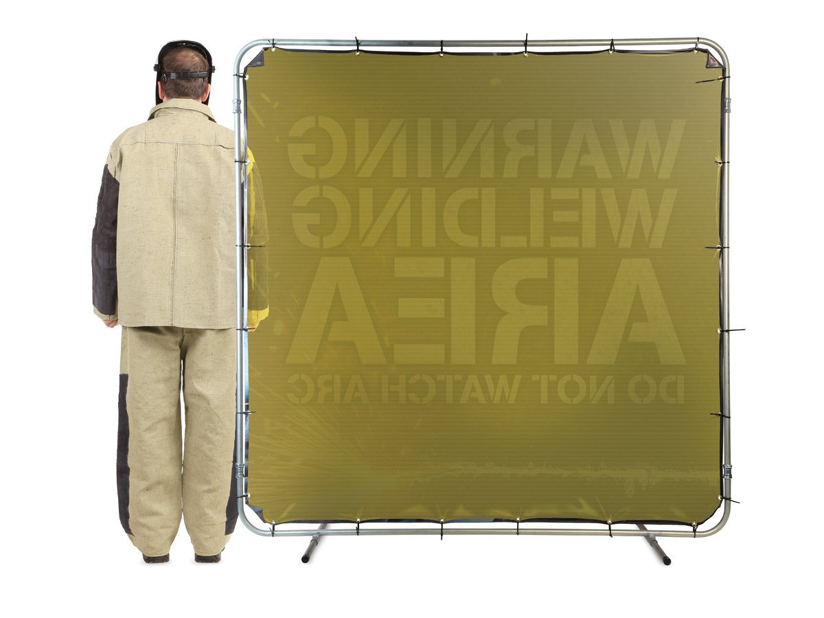 Communicate motivational and safety messages while protecting your employees from the welding process. These one-of-a-kind welding screens not only protect employees from hazards associated with the welding process, but also feature key safety and motivational messages printed on the outside of the screen. The unique ONE-WAY printing method allows welders to see through the screen, while simultaneously protecting and informing employees on the other side. ONE-WAY Printed Welding Screens provide a quick, easy solution as temporary welding barriers. The Welding Screens are available in two sizes?6'x6' and 6'x8', with three colors (tints)?Yellow, Red, and Blue. Screen edges are hemmed and sewn with brass grommets. Also includes a 25-pack of black zip ties to hold the screens in place. Frame sold separately.