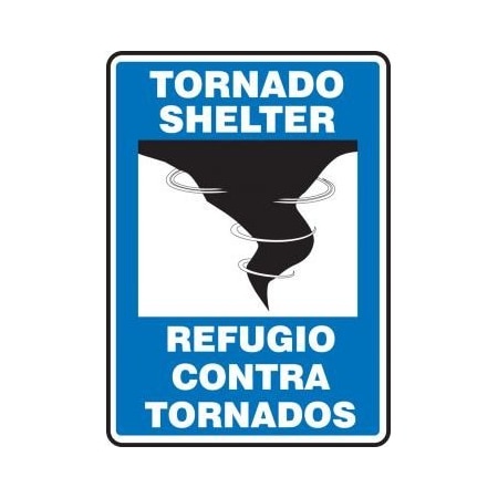 Accuform SBMFEX553XT Spanish Bilingual Legend "Tornado SHELTER/Refugio Contra TORNADOS" Sign, 14" Height, 10" Wide, 14" Length, 0.060" Thickness, Dura-Plastic, Blue/Black on White