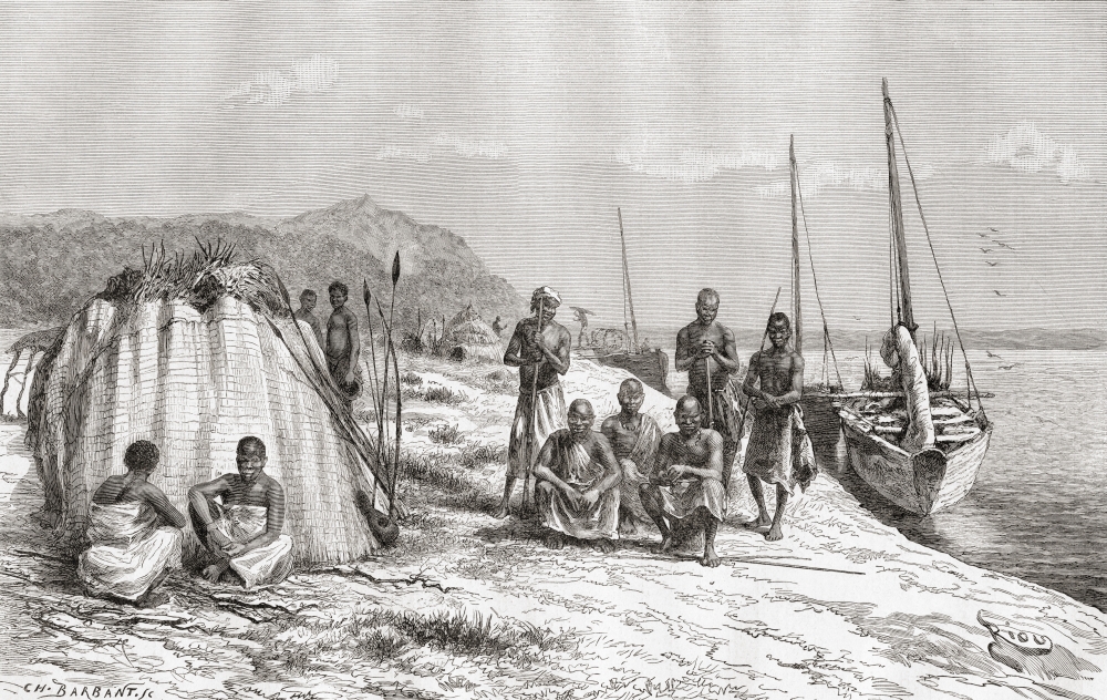 - Congolese Tribesmen By Their Boats On The Congo River In The 19Th Century From The Book Africa Pintoresca Published 1888