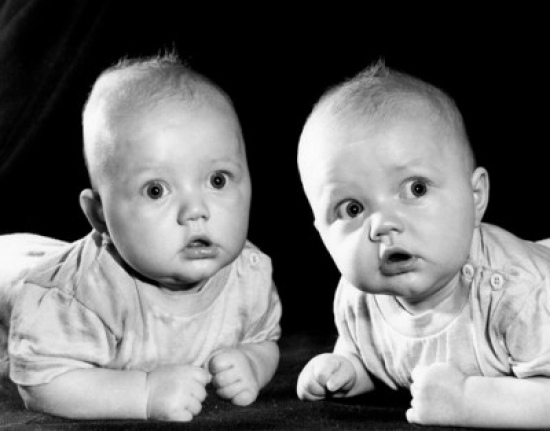 Posterazzi SAL2559574A Two Babies Leaning on Elbows Poster Print - 18 x 24 in.