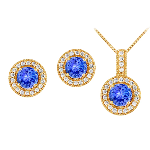 Fine Jewelry Vault UBUNERPD32336Y14CZTZ600 December Birthstone Tanzanite with CZ Halo Earrings and Pendant in 14K Yellow