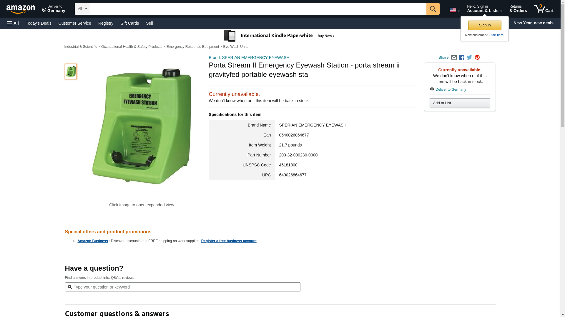 Brand: SPERIAN EMERGENCY EYEWASH