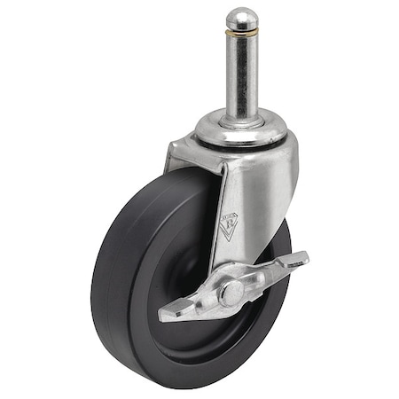 Shepherd Regent Series 3" Diameter Polyolefin Wheel Swivel Caster with Side Brake, 7/16" Diameter x 1-7/16" Length Brass Band Grip Ring Stem, 120 lbs Capacity, Zinc Finish