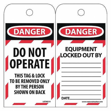 LOTAG10ST100 Polytag National Marker Tags, Lockout, Danger Do Not Operate This Tag Lock, 6 Inches x 3 Inches, Polytag, Box of 100