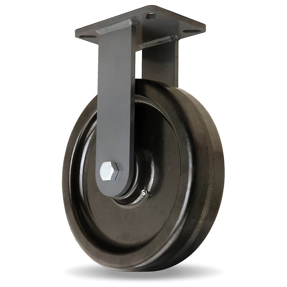 HAMILTON Champion Casters offer superior performance and reliable service. A variety of wheel types to meet your needs. Features a 1" integrally-forged steel kingpin that is extremely durable and strong. -1/2" thick drop forged steel mounting plate with -3/8x3" plate steel legs are welded inside and outside to forged steel horn base. CNC-machined main load bearingA with 3-3/4" diameter raceway; 1" precision tapered thrust secondary load bearing counteracts radial thrust. Ball-check type lubrication fittings in swivel assembly and in wheel hubs with tapered or straight roller bearings.