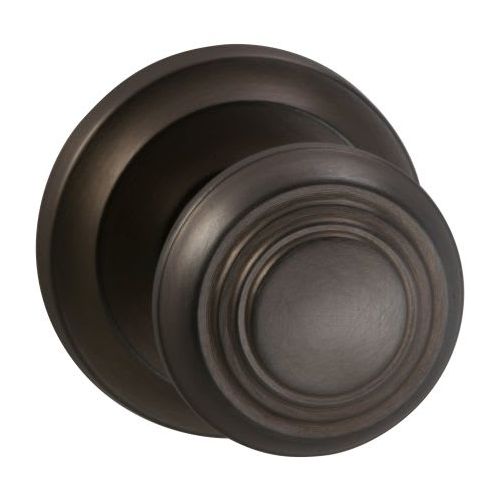 Omnia 970/00.PA5A 970 Knob with 2-5/8" Rose Passage with 2-3/8" Backset, T Strike, 1-3/8" Doors Unlacquered Antique Bronze Finish