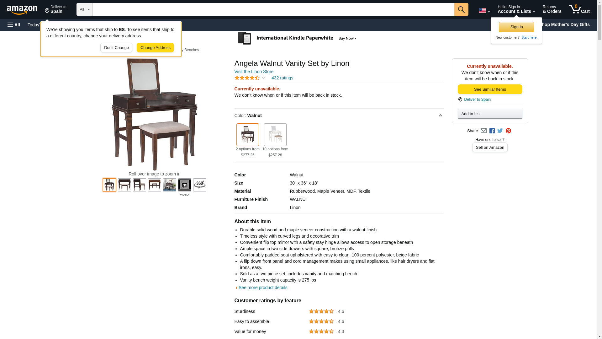 Linon Angela Walnut Vanity Set,30" x 36" x 18"