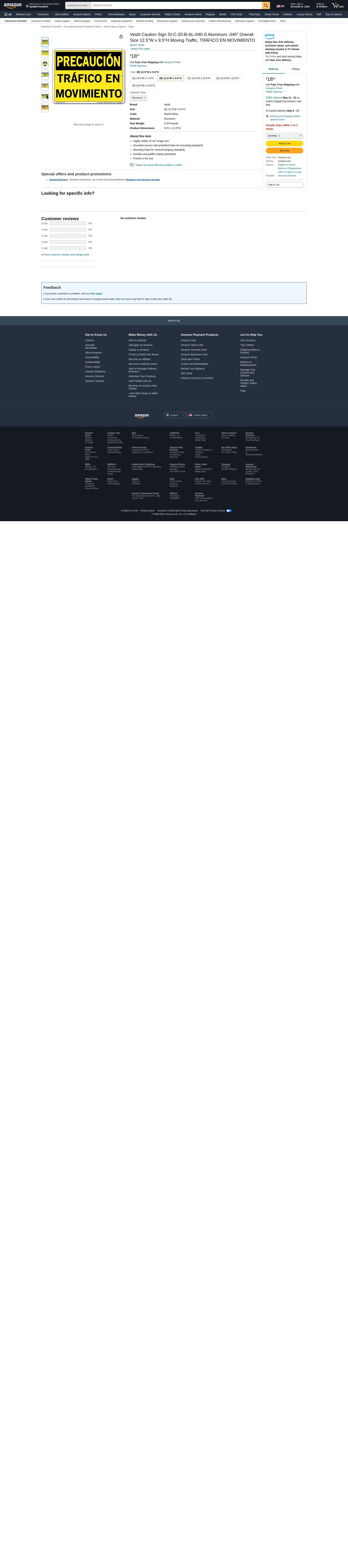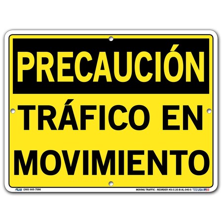 Vestil Caution Sign SI-C-20-B-AL-040-S Aluminum .040" Overall Size 12.5"W x 9.5"H Moving Traffic, TRÁFICO EN MOVIMIENTO