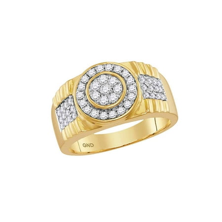 <ul> <li>10kt Yellow Gold</li> <li>7/8 Carats total weight</li> <li>6.3 grams (approximately)</li> <li>Ring size selectable. All diamonds are natural and conflict-free in origin.</li> </ul>