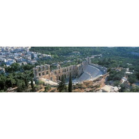Panoramic Images Stretched Canvas Art - Odeon tu Herodu Attku the Acropolis Athens Greece - Medium 18 x 6 inch Wall Art Decor Size.