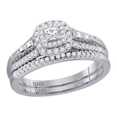<ul> <li>1/2 Ct.t.w. --- 1/6 carat center solitaire</li> <li>14kt White Gold</li> <li>I1-I2 clarity; H-I color</li> <li>5.35 grams (approx.)</li> <li>Gift box included.</li> </ul>