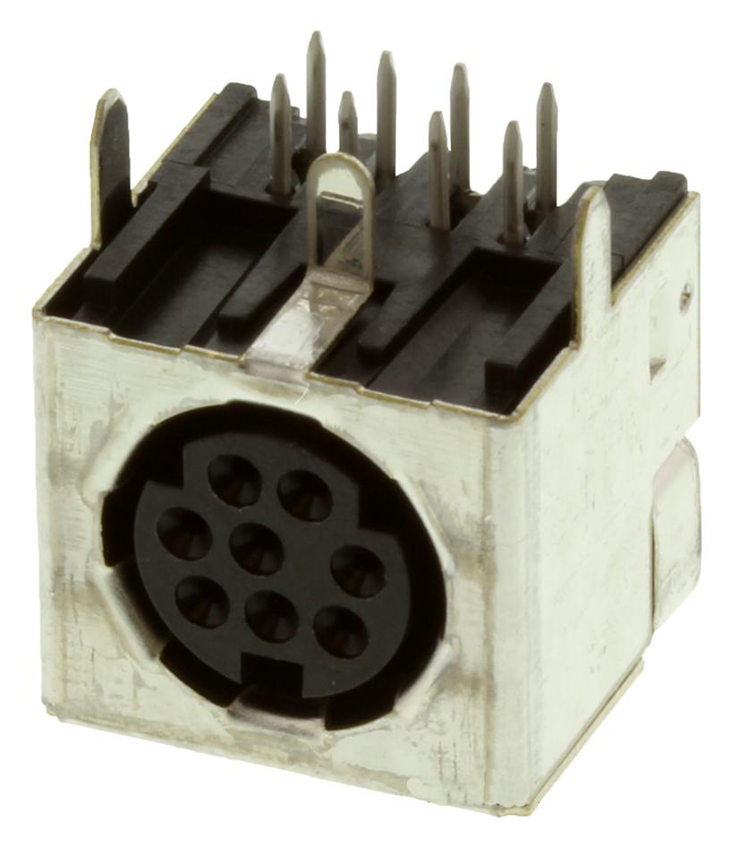 | Feature | Manufacturer: TE Connectivity Product Category: Circular Mini-DIN Connectors RoHS: Standard: Mini DIN Product Type: Connectors Contact Gender: Socket (Female) Number of Contacts: 8 Mounting Style: Through Hole Termination Style: Solder Tail Current Rating: 1 A Brand: TE Connectivity / AMP Contact Plating: Gold Shell Plating: Tin Voltage Rating: 30 V |