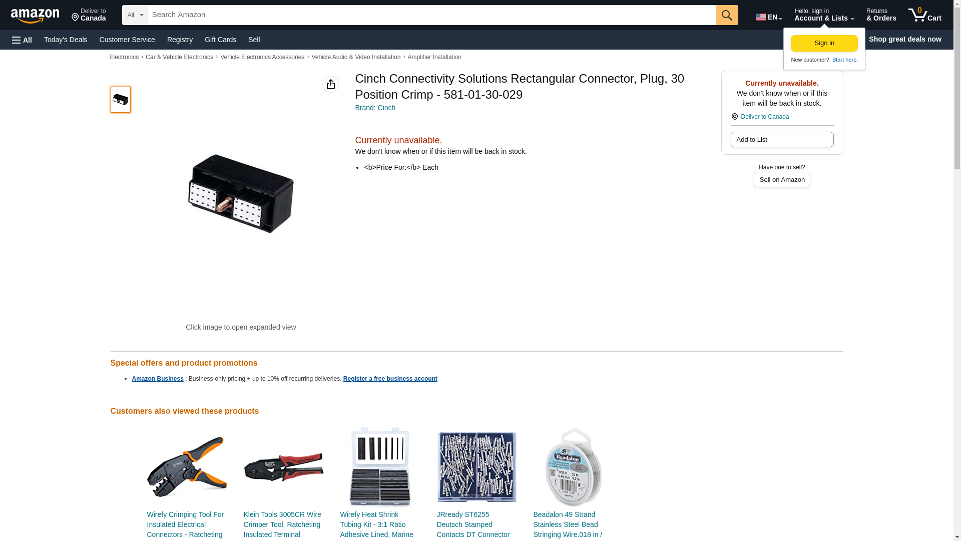 | Feature | CINCH 581-01-30-029 RECTANGULAR CONNECTOR, PLUG, 30WAY CRIMP |