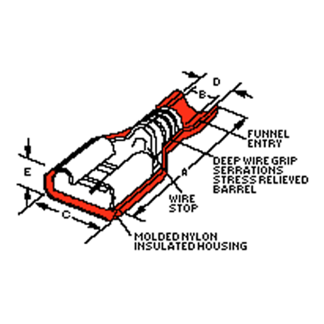 | Feature | 19003-0105 - Quick Disconnect Terminal, InsulKrimp 19003 Series, 22 AWG, 18 AWG, 0.8 mm\xb2 |