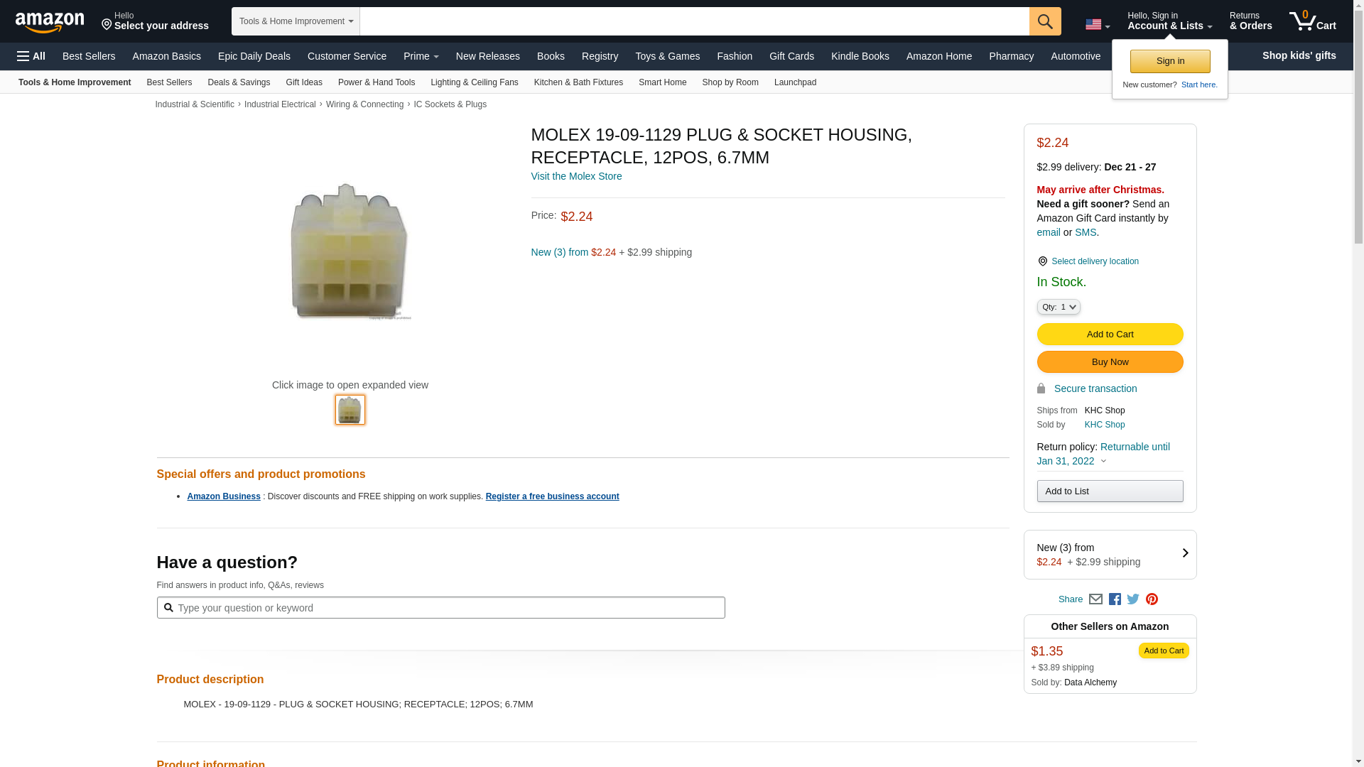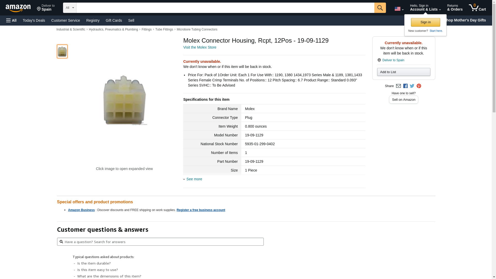 | Feature | This listing is for 2 pcs Molex Part Number 19-09-1129 |