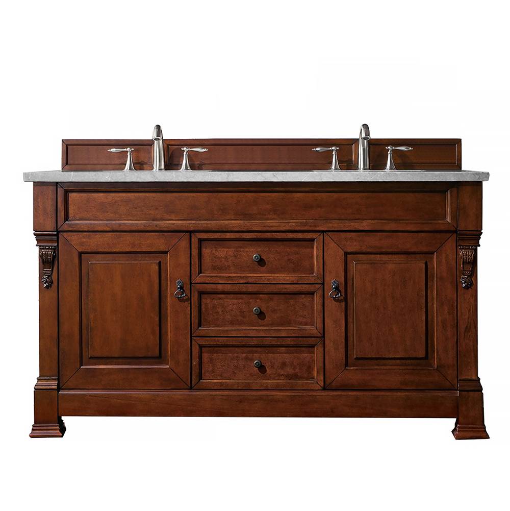 James Martin Furniture 147-114-5681-3ESR 60 in. Brookfield Double Vanity with 3 cm Eternal Serena Quartz Top44; Warm Cherry
