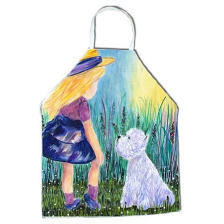 Caroline's Treasures SS8351APRON Little Girl with Westie Apron Polyester Cloth Adult Bib Styled Washable Kitchen Apron, Large, Multicolor