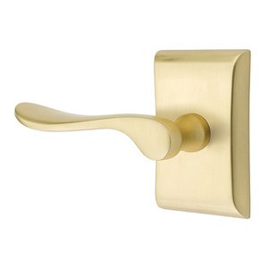 Brass Modern Hardware Collection - Privacy Luzern Left Handed Door Lever And Neos Rose with Concealed Screws in Satin Brass by Emtek Hardware - C5211238LULHUS4 | MyKnobs