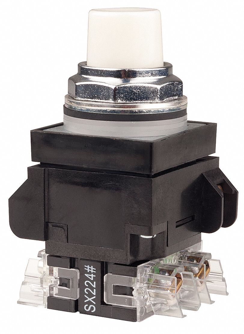GE (General Electric) - 104PBT11W1S4-30mm Incandescent 1NO/1NC Illuminated Push Button with Maintained/Momentary Action, White