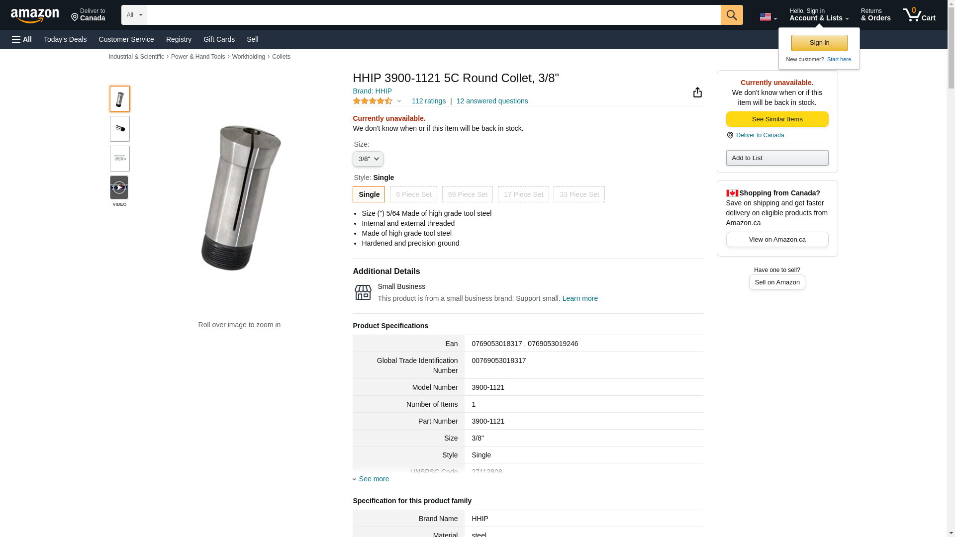 Hhip Round Collet 5C 3-8" 3900-1121 ZO-G2466407 - SIM Supply