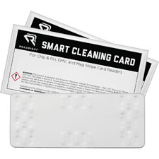 This cleaning card can be used to clean chip and pin, EMV and mag stripe card readers including manual ATMs, POS terminals, hand-held POS devices, self-serve kiosks, mag stripe readers, transit/parking pay stations, vending machines, pay at the pump, time clocks, door locks and player tracking. The cleaning card improves transaction completion rate and prevents susceptibility to fraudulent transactions. Its waffle design conforms to critical surface areas including chip reader pins and is equally effective for swipe, freaktion head and landings in all card reader devices. Convenient single-use, pre-saturated cards eliminate cross contamination and require no additional products. For Drive Type: Chip Pin; EMV and Mag Stripe Card Readers; Cleaning Method: Pre-Saturated.