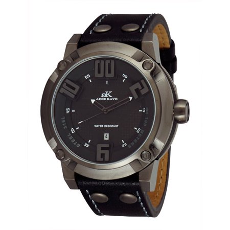 Adee Kaye Men's Blitz Men Stainless steel case leather strap Japan Quartz 2115 movement double layer dial color spring on screws body Gunmetal-Black