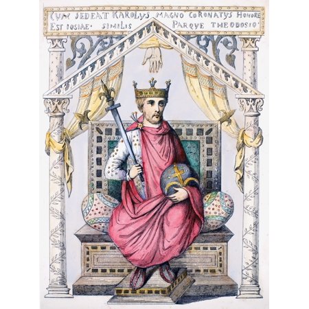Charles Ii (823-877) Ncalled The Bald King Of France 840-877 Holy Roman Emperor 875-877 Line Engraving French Early 19Th Century After A Medieval Miniature Rolled Canvas Art - (18 x 24)