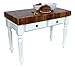 John Boos Rustica walnut butcher block table. 4-inch-thick end-grain black walnut atop ornate pedestal legs of various colors.