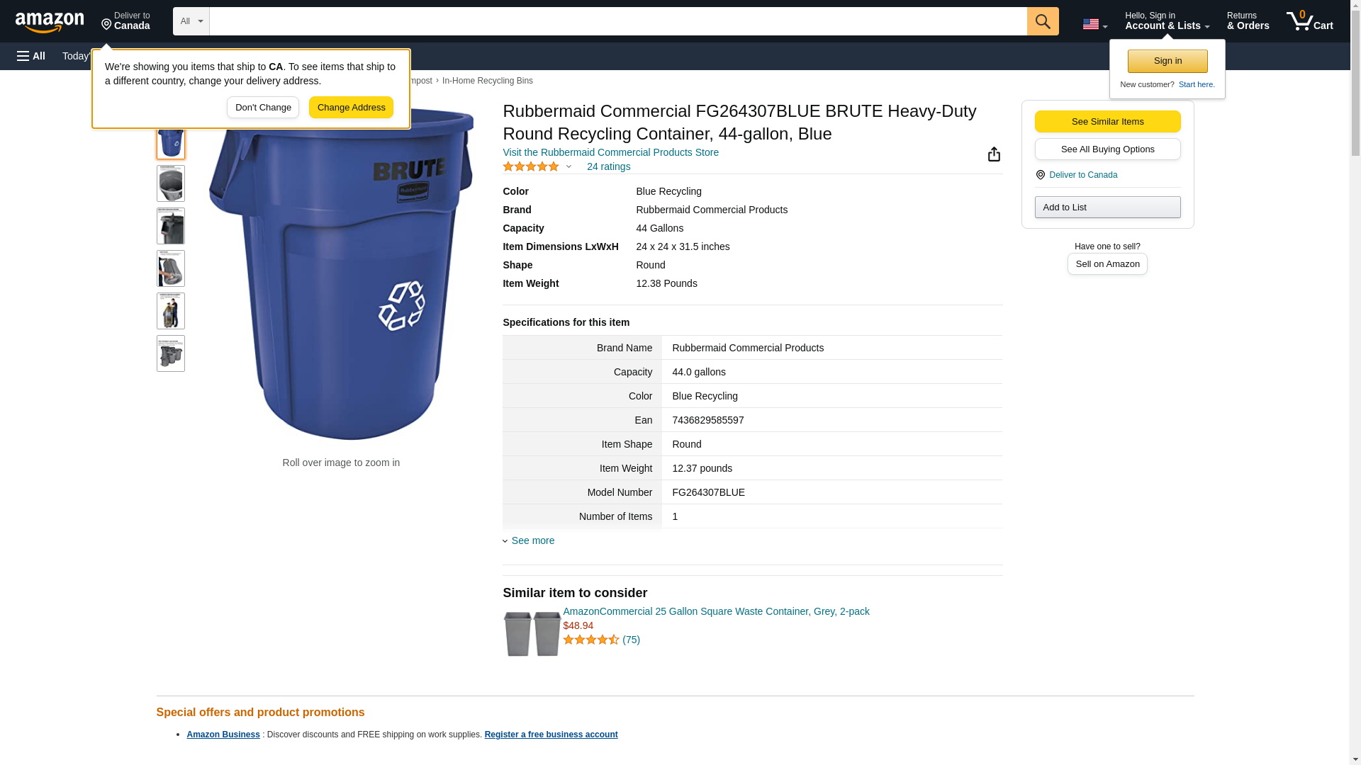 Rubbermaid FG264307BLUE Garbage Can BRUTE Recycling Container without lid with