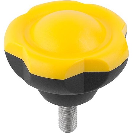 KIPP K0255.631017X25 FIVE LOBE GRIP D1=63 D=M10X25 H=44 FORM:L THERMOPLASTIC BLACK RAL7021 COMP:STAINLESS STEEL CAP:YELLOW RAL1021 - MROSupply.com