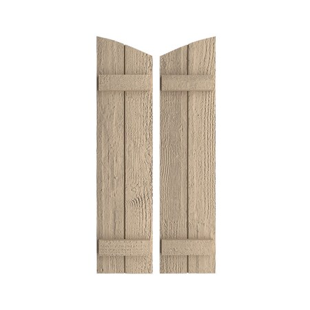 Ekena Millwork SHUBJL11X26RSPR (22 3/8" Low Side) Timberthane Two Joined Board-n-Batten w/Elliptical Top Faux Wood Shutters (Per Pair), Primed Tan, 11" W x 26" H