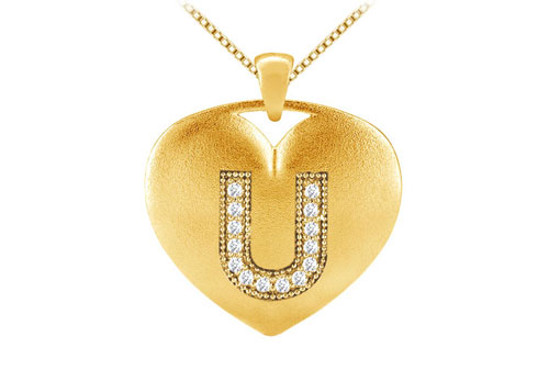 Fine Jewelry Vault UBPDH472Y14DU Heart Diamond Pendant with Initial U in 14K Yellow Gold 0.14 Carat Diamonds