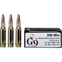 G9 Defense .308 Winchester 145 Grain Hollow Point Brass Cased Rifle Ammunition | $2.40 Off w/ Free Shipping and Handling